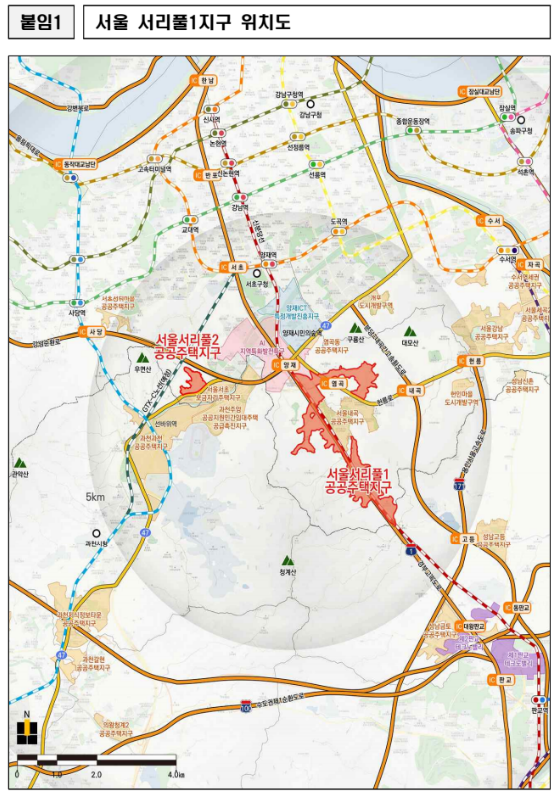 국토교통부는 2월 2일, 서울 서초구 일대에 서리풀지구 공공주택지구를 지정·고시하고, 이어 관악구 남현동 일대 서울남현 공공주택지구 개발도 추진한다고 밝혔습니다.