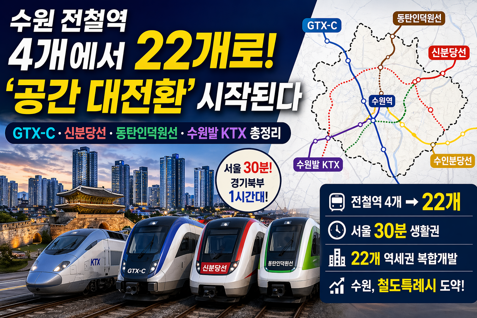 수원 전철역 4개에서 22개로…‘공간 대전환’ 시작된다 (GTX-C·신분당선·동탄인덕원선 총정리)