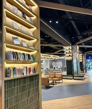 들어가자마자 가장 먼저 눈에 띈 건 1층에 있는 스타벅스 매장과 함께 구성된 넓은 북카페 공간이었어요. 일반 스타벅스보다 훨씬 넓고, 조용하면서도 아늑한 분위기라 너무 마음에 들었답니다.