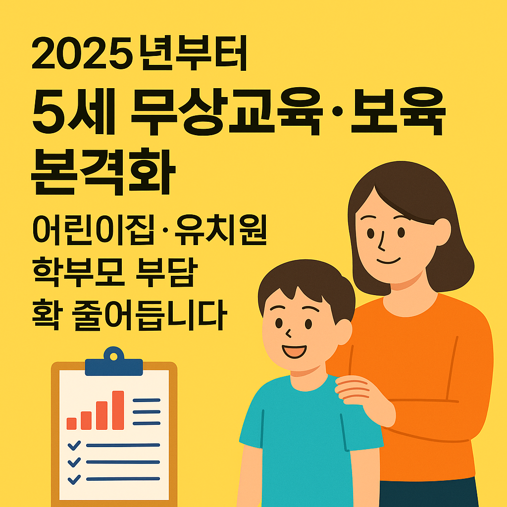 2025년 하반기부터 전국의 어린이집과 유치원에 다니는 5세 유아를 대상으로 무상교육·보육 정책이 본격 시행됩니다. 이에 따라 이달(2025년 7월)부터 약 27.8만 명의 5세 유아를 둔 학부모들에게 총 1,289억 원 규모의 교육비·보육료 추가 지원금이 제공됩니다.