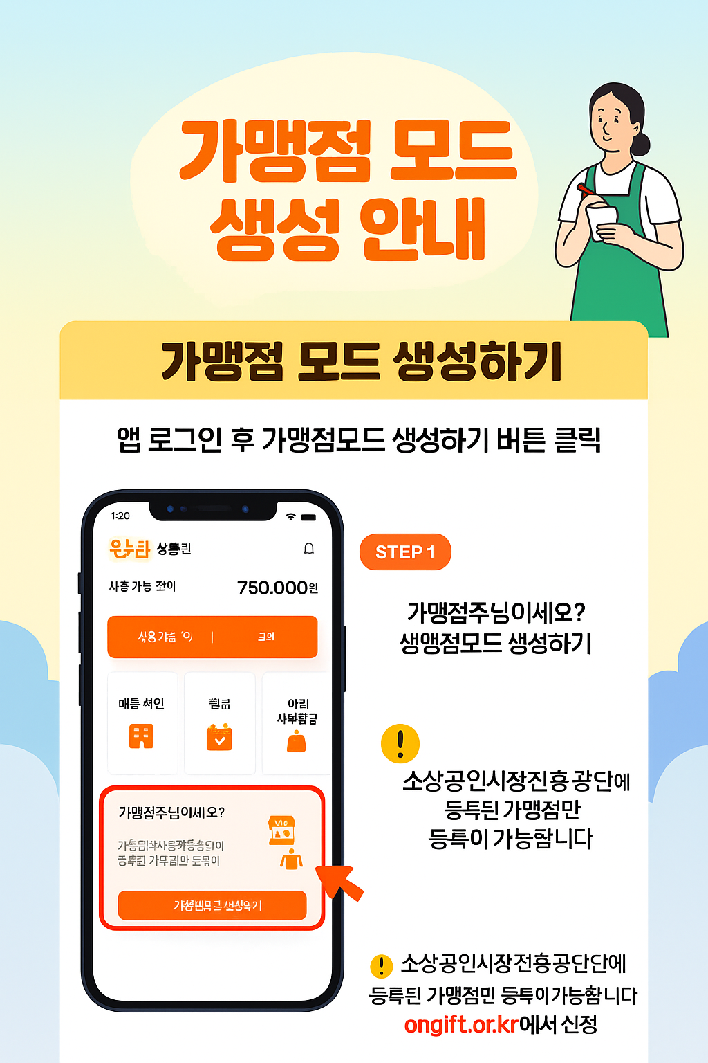 - 소상공인시장진흥공단에 등록된 가맹점만 등록 가능