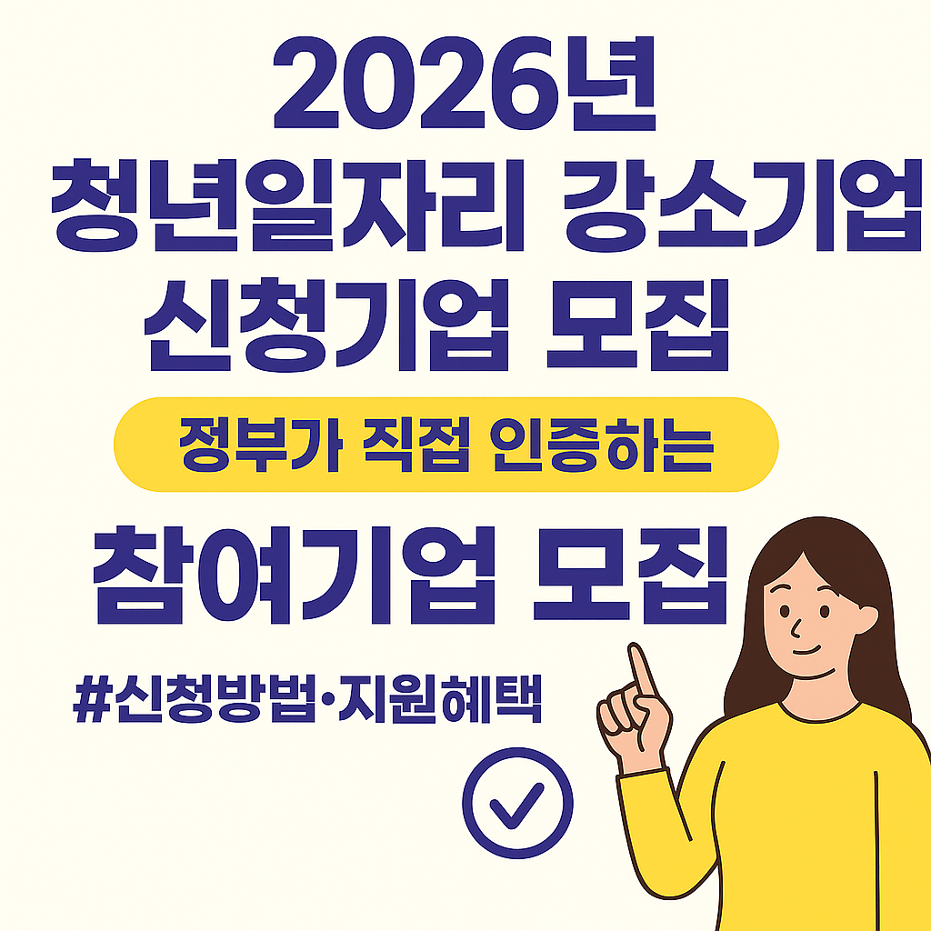 이번 2026년 청년일자리 강소기업 모집은 청년들에게는 안정적인 일자리를, 기업에게는 인재 확보와 다양한 정부 지원을 제공하는 중요한 기회입니다. 조건에 맞는 중소·중견기업이라면 꼭 신청해 보시기 바랍니다.